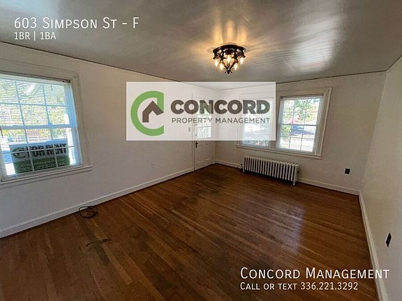 1 Bedroom 1 Bath - Spacious 2nd floor apartment close to downtown GSO with tons of natural sunlight. Entrance is on the backside of the building. This large apartment has living dining area. The kitchen features fun vintage cabinets with gas stove, fridge and enough room for a table small table. Bathroom features vintage tile walls and flooring. Hardwood flooring through out the whole apartment and has been updated with central A/C and heat. (Tenant is responsible for all utilities, water. hot water and gas are included in the rent) $875/mo., $725/dep AVAIL NOW NON SMOKING HOME Pet Policy: 35lbs & under fee start at $300.00. PET RENT $20.00 a month additional $5.00 per pet Restrictions apply CATS ONLY (2 MAX) You can check out a key Monday - Thursday 9am to 4pm & Friday 9am to 3pm. We hold a form of ID, as a key deposit. Were located at 510 Summit Ave. WE CHECK FOR THE FOLLOWING: ** STOP PLEASE READ BEFORE YOU APPLY ** Credit History, Rental History, Employment, Nationwide Eviction Search and Nationwide Criminal Background. Any Evictions Eviction Filings, Felonies, Felony Charges and Money Owed to Another Property in the last 7 years will EXCLUDE an applicant. $85.00 Application fee THIS IS A ONE TIME FEE NON-REFUNDABLE per adult AVOID RENTAL SCAMS: Concord Management is a licensed Real Estate Agency. Concord Management lists all of our properties with a Concord Management Watermark. We will NEVER ask for you to wire any monies or to supply your social security number to view any properties. If any money is requested, it will always be through Concord Managements website. Please note we do not keep up with sq footage $725/Dep. $875/Mo. 1 Bedroom 1 Bath Spacious 2nd Floor Apartment Avail Now Close To Downtown Gso With Tons Of Natural Sunlight. Entrance Is On The Backside Of The Building. Fridge And Enough Room For A Table Small Table. Bathroom Features Vintage Tile Walls And Flooring. Hardwood Flooring Through Out The Whole Apartment And Has Been Updated With Central A/C And Heat. (Tenant Is Responsible For All Utilities This Large Apartment Has Living Dining Area. The Kitchen Features Fun Vintage Cabinets With Gas Stove