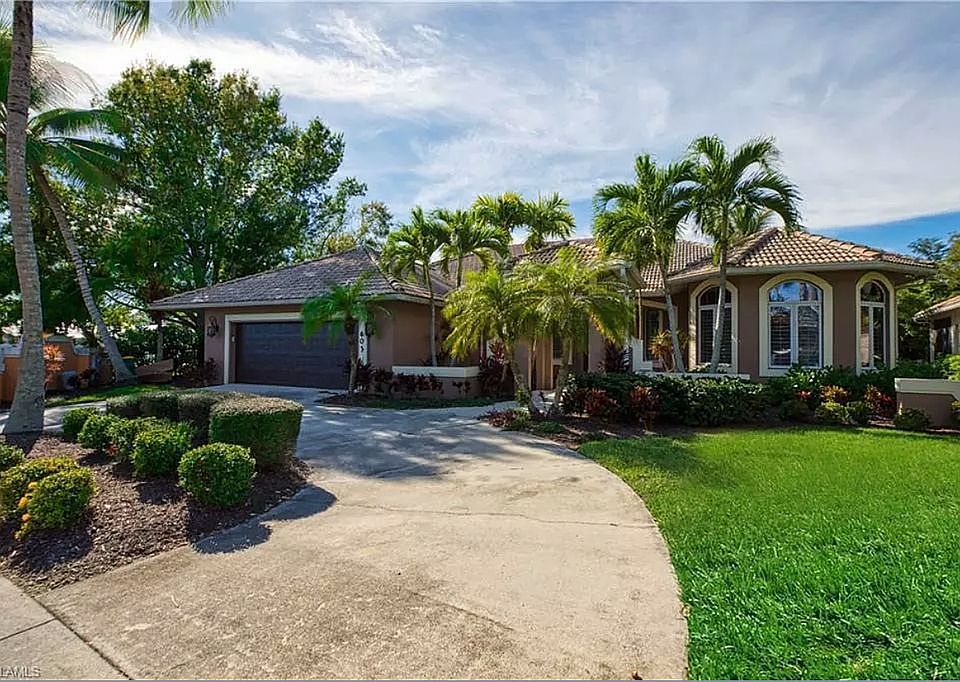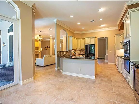 WALK TO BEACH/WEST OF 41! 3656 sq ft, unfurnished, annual rental. 4 bed/3 bath plus den, office, and formal dining room. Lake view. Lanai with pool, spa, and outdoor shower. 2 1/2 car garage. Fenced back yard. Light and bright, with high ceilings throughout. Freshly painted and impeccably kept. Tile and hardwood floors throughout. Oversized laundry room with additional shower. Surround sound and intercom speakers through out the home. Electric fireplace. Many upgrades too numerous to list. Home is in a small/17 home gated (for safety and privacy) HOA community, where no noisy short term rentals are allowed. In addition to beach, Publix, Trader Joe's, Whole Foods/Mercato and "endless" shopping and dining are only minutes away. This home's large size, split plan and layout would be perfect for a multi-generational family. All rooms, with the exception of the large 4th bedroom/flex room, are on the first floor. This rental home is a rare find that will not last. $5,900/mo.