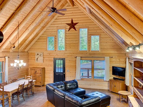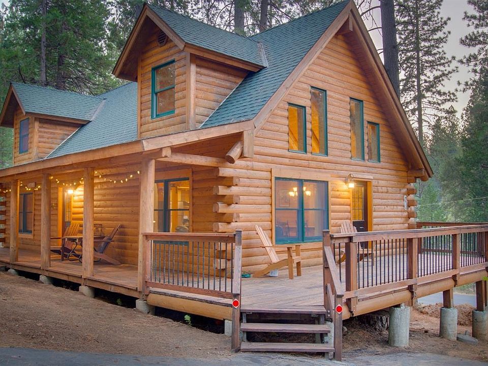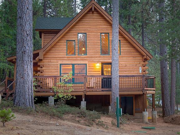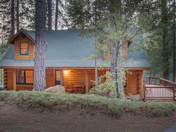 Adorable log cabin is ready for new owners! Large great room with vaulted ceilings and open kitchen. All wood clad Andersen windows. One bedroom is located on the main level. The second bedroom is the open loft upstairs. The charming covered front porch is perfect for all seasons! Exterior of cabin and decks have been stained!Just a short walk to access the Stanislaus National Forest.