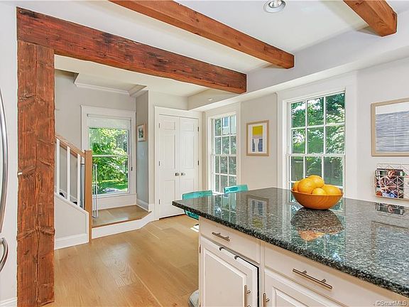 Enjoy amazing views of Long Island Sound from all three floors of this gorgeous two bedroom, three bathroom Smith Cove Mews townhouse. Wonderful natural light throughout. The first floor features a family room with fireplace and access to patio, full bath, and laundry. Inviting kitchen opens into chic dining room and living room with fireplace and balcony. Spacious master suite with balcony has large walk in closet and ample storage. Very desirable downtown Greenwich location with water access for canoes and kayaks. Close proximity to restaurants, parks, train, shops and more!