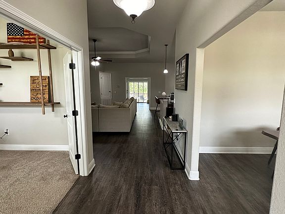 Step into your new home, beautifully located on a spacious, landscaped lot in the esteemed Fox Valley of Crestview. Featuring 4 bedrooms and 3 baths along with an office, formal dining, and Florida room. This home exudes elegance from the moment you enter. The high ceilings with crown molding create an airy atmosphere, while the trey ceilings in the expansive living room add a touch of sophistication. The office and dining room are illuminated by oversized windows, filling the space with natural light and highlighting interior details like bullnose cornered walls. This residence blends modern charm with warmth. At its heart is the central, eat-in kitchen, showcasing stunning grey granite countertops that complement the rich maplewood cabinets. It also includes stainless steel appliances, a breakfast bar, a center island, and a walk-in pantry. The split-bedroom floorplan offers privacy, with a primary bedroom with its own en suite (dual vanity, garden tub, walk-in shower, dual walk-in closets) on one side of the home, while on the other side are two guest bedrooms sharing a full bath and separate mother-in-law suite with the third full bath. The lot has a large fenced-in backyard with a woodland view, sizable deck, and 2 car garage. Pet-friendly policies, subject to owner approval and a non-refundable pet fee, ensure that your furry companions are welcome. Plus, our strict no-smoking policy promotes a pristine and health-conscious living environment for all residents.