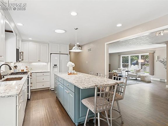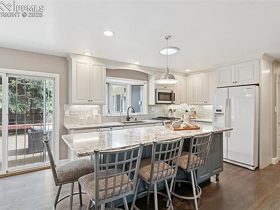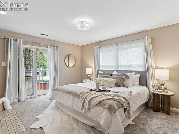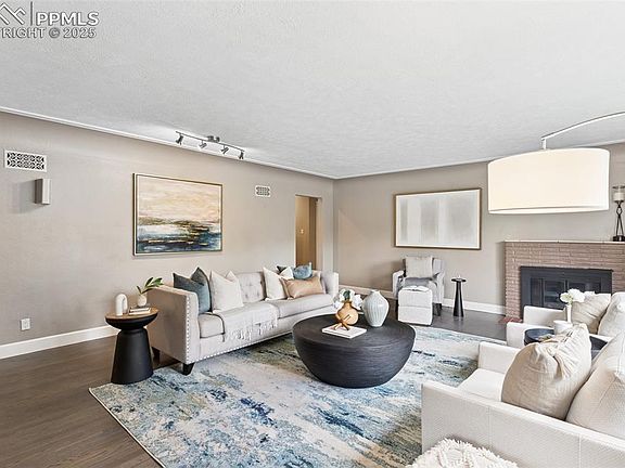 MAIN-LEVEL LIVING * WOOD FLOORS * NEW CARPET * NEW INTERIOR PAINT *OVERSIZED 2-CAR GARAGE * UPDATED KITCHEN * UPDATED BATHROOMS * LARGE DECK * 4 BEDROOMS * 2 FIREPLACES * PROGRAMMABLE HEATED BATHROOM FLOORS * UNDERMOUNT LIGHTING UNDER KITCHEN ISLAND * OFF-STREET PARKING VIA GATED SIDE ACCESS This beautifully maintained home is a true gem inside and out! Thoughtfully cared for by its owners, it features fresh neutral paint, refinished hardwood floors, and brand-new carpet that make the space truly shine. The open and welcoming great room offers generous space, a large picture window, and a sought-after fireplace—perfect for relaxing or entertaining. The kitchen is sure to become a favorite gathering place, with its expansive island (with undermount LED lighting) that seats several bar chairs, beautiful quartz countertops, sleek stainless steel appliances, and direct access to the deck. Step outside to your private oasis, complete with mature shade trees, vibrant perennials, and an impressive deck ideal for enjoying serene Colorado evenings. The primary suite is tucked away for privacy and features its own bathroom, cozy fireplace, and access to the deck—an ideal retreat at the end of the day. Three additional bedrooms are full of charm and character. Other special features include: soft close cabinetry, evaporative cooler, dimmer switches, security doors, and so much more. Located just minutes from award-winning D-12 schools, shopping, and the beauty of Cheyenne Cañon, this home offers the perfect blend of comfort, style, and convenience.