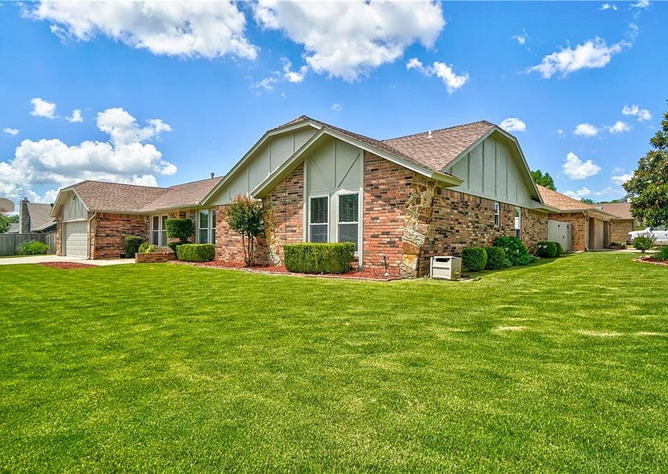 Beautiful home located in Carl Albert School District!!! This home sites on a large corner lot, with a huge backyard. Home has 3 bedrooms, 2 bath rooms, recently remodeled kitchen designed by Karen Black. Features include, quartz counter tops, white farmhouse sink, new tile and lots of cabinetry. Large living room with brick fire place, over sized mater bedroom, with large walk-in closet. Master bath has newly installed walk-in shower. Hall way bath was remodeled and is stunning. New paint on exterior of home and NEW windows throughout. Updated HVAC, extended concrete drive that leads to storage building out back. Backyard is beautifully landscaped, with a large covered patio. Home is close to Tinker Air Force Base, Boeing, Shopping and Restaurants!! Call for your private showing today!!!!