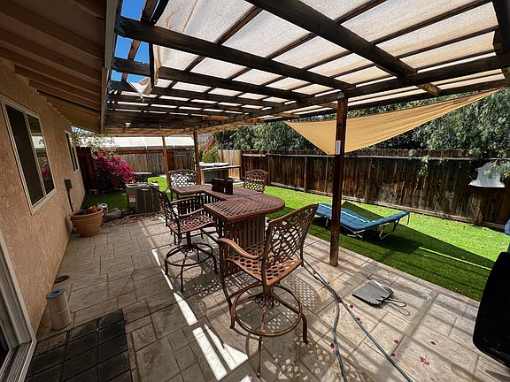 Fully Furnished (or not) Single story, 3 Bedroom 2 full baths. Desert Villa on an beautiful landscaped acre. Full kitchen, Quartz counters, with newer Hardwood Floors, Garage, Hot tub, Big screen Tv, fenced back yard. Walk to Supermarket and restaurants and entertainment center. Central AC, and Heat pump. Evaporative cooler. Spa. Garage. Solar panels on roof. Water paid. Renter pays all electric.
