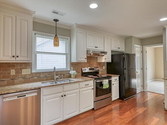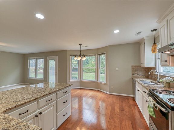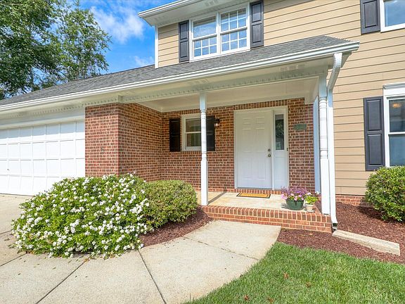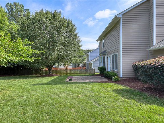 Relax on the patio overlooking the treed backyard. Short distance to private community pool, pickle ball court, playground and common area. Many improvement upgrades to include newer kitchen, Hardie plank siding, flooring, HVAC, hot water heater. New roof 2022, some fresh paint, new full bathrooms, some carpet and LVP flooring. Some windows need to be replaced sold 'as-is'. Move in ready home close to hwy. 64. Left side is a 10ft drainage & utility easement. Washer & dryer convey and sold 'as-is' and refrigerator & microwave. Property has been professionally measured, SF is 1,716.