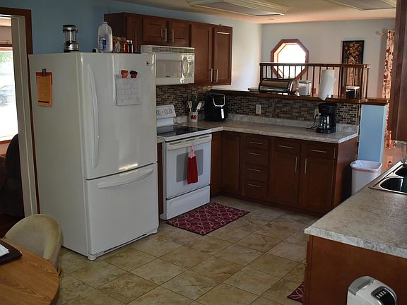 South facing ranch home with a detached double garage, walk-out basement and 2 cement patios. Spacious eat-in kitchen with appliances included, 2 bedrooms and full bath on the main floor and additional bedroom in the lower level. Also a family room and shop area in the lower level. Located on the edge of town and in a great small town community.