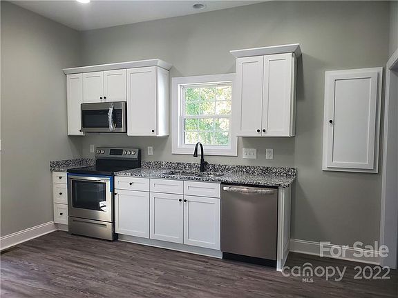 Like a new house!!! GUTTED TO THE STUDS with a building permit. NEW: Vinyl siding, front porch, vinyl railing, LVP flooring throughout home, new sheetrock walls, new insulation in walls & ceiling, new interior doors, new windows, new lights, complete electrical update. Kitchen has new custom built cabinets, granite countertops in kitchen and bath, stainless steel appliances. All new plumbing. New tub/shower sink and faucets. Architectural roof was replaced in Jun 2013. Gas pak was replaced in June 2013. New concrete paver sidewalks. Basement floor and walls were painted. Walk to downtown Kannapolis and enjoy the baseball games, dining, activities, shopping and the movies! Listing agent/owner is a member of the LLC.