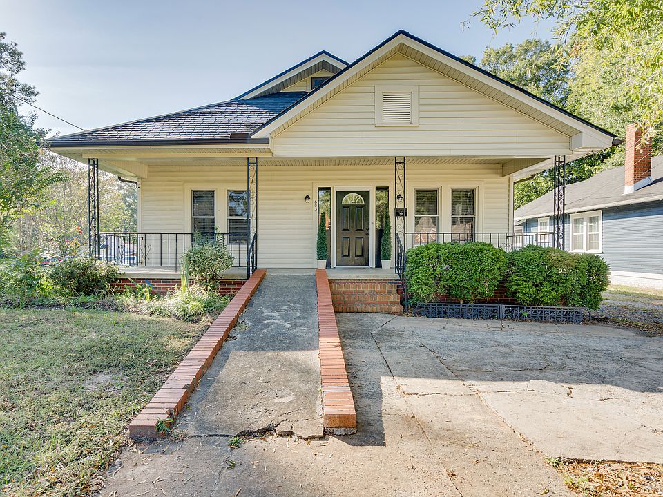 Get ready to fall in love with 603 West Carver Street. This chic three bedroom/two full bath ranch home is situated on a corner lot and is minutes away from Duke University and Duke Hospital! This bright and charming home offers the perfect balance of comfort and convenience with easy access to downtown Durham, parks, restaurants, and entertainment. Step inside from the rocking chair front porch to find freshly painted neutral colored walls, hardwood floors, luxury vinyl plank flooring, and one-level living space with a smooth-flowing floor plan. The kitchen is perfect for the aspiring chef with granite countertops, stainless steel appliances, ample cabinet space, farm-style sink, subway tile backsplash, and a walk-in pantry all perfect for cooking up a storm. The large dining room is sweetly nestled between the kitchen and living room and great for entertainment with soft blue walls, colorful pendant lighting, and interior window shutters. The three bedrooms offer ample space, closets, faux two-inch blinds, and natural light ensuring privacy and coziness. The washer and dryer is located in a large mud room that can also double as a flex space or home office. Step out of the mud room onto your large covered back deck to a completely fenced-in backyard that is perfect to unwind with friends, family, or a pet after a busy week. Parking is never an issue as the home has a long driveway, two car parking pad in front of home, and a covered carport off the back porch. Second floor features a permanent staircase walk-in attic for storage. Home has a brand new 10x12 storage shed for tenant use. Seasonal lawn care included with rent and no HOA! Come make 603 West Carver your new sanctuary. No smoking on property. Tenant responsible for all utilities. Renters insurance required. Pet(s) negotiable. Washer/Dryer and all kitchen appliances provided. Seasonal lawn care included with rent! No HOA! Living room fireplace non-functional. Security cameras do not convey for tenant use and will be removed. Application requirements: income 3x the month's rent, clean credit history over 600, and clean rental history