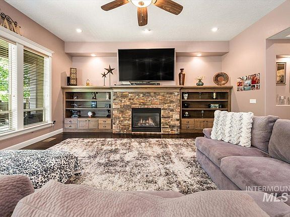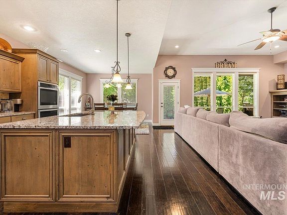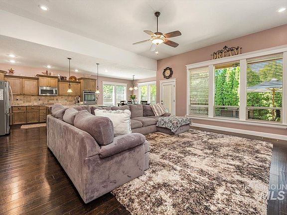This immaculately maintained single level home is located on a corner lot in the coveted Paramount subdivision in Meridian Idaho. Close to everything, you're just minutes from dining, shopping, golf, Eagle Island state park and so much more. This home is fully upgraded with beautiful wood flooring, oversized three car garage for all of your toys, and extended patio perfect for barbequing and relaxing in your private backyard. The kitchen has elegant cabinets, double oven, gas range and large island perfect for game nights. Enjoy a large master with walk-in closet and tiled shower. Custom window coverings throughout. A main level bonus room would make an excellent mancave, she-shed or fourth bedroom. Use the amazing park steps away. Don't forget to enjoy one of the four community pools on a hot summer day. This is the home you have been waiting for.