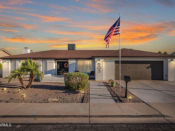 Welcome to a truly exceptional opportunity in American Village! This stunning, fully remodeled single-level home stands out from anything else on the market, boasting an expansive north/south-facing lot and a sparkling Pebble-Tec pool with a brand new cool deck—perfect for Arizona living.
