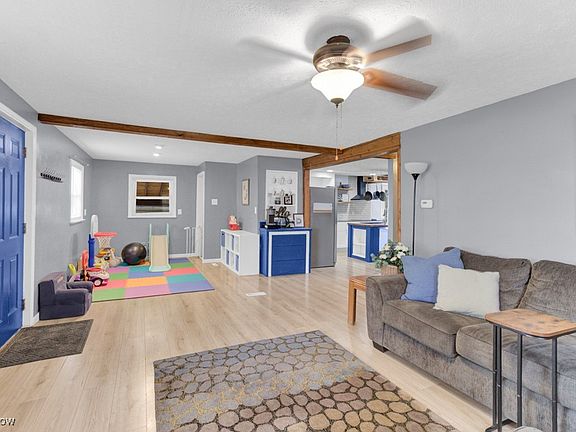 New listing in Minerva! Conveniently located close to downtown, this charming home offers an inviting open kitchen featuring a butcher block island, stylish tile backsplash, and warm beamed ceilings. The spacious living area flows to a wide hallway leading to two generously sized main-level bedrooms. Enjoy the walkout access to a fenced backyard—perfect for relaxing or entertaining! The lower level is partially finished with two versatile rooms, a full bath, storage area, and utility sink. Recent updates include a new roof (2024) and a newer drain system from the house to the street, providing peace of mind. Additional features include a carport, smoker and grill, washer/dryer, and appliances—all to convey. Don’t miss this move-in ready home with flexible living