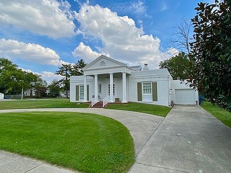 This elegant Carmi home is a one of a kind. The brick exterior is timeless and is enhanced by exquisite detailing both inside and out. The exterior boast grand columns, original double entry doors, brick front porch, and wrought iron decorative trim. Inside does not disappoint with soaring ceilings in the spacious living room and custom arched windows overlooking the back courtyard. This historic home has two main floor bedrooms and both a full and a half bath, office space, second living space, dining room, and kitchen area. The second floor houses another private bed and bath. Outside you'll find the one car attached garage, circular drive, and back brick paved courtyard. Also included with the property is the adjacent extra lot with plenty of possibilities.