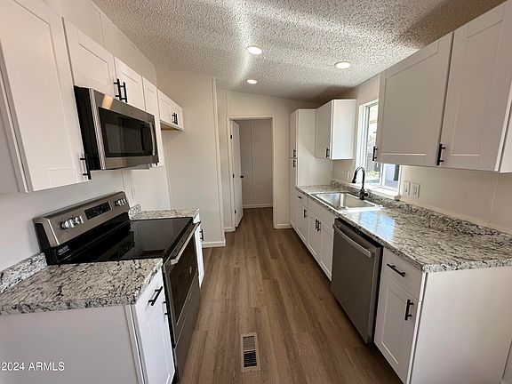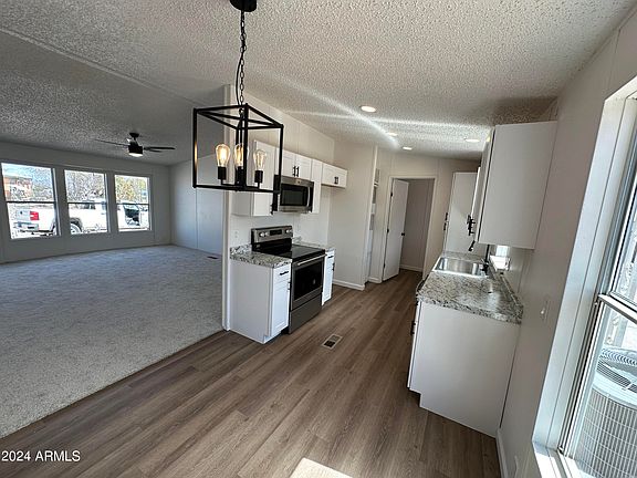 Now available! Manufactured home updated with modern interior design. Features include stainless steel appliances, wood look plank flooring, timeless white cabinets, fresh interior paint, plush carpet and more. Situated on a large lot with detached garage/workshop. A must see!