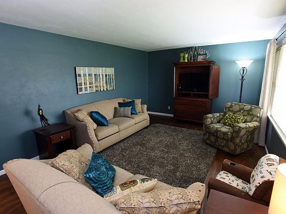 Beautiful 3 bedroom 1.75 bath sprawling ranch has 1700sq ft of living area and attached 2.5 car garage! Walk-in to the living room, w/plenty of natural light & NEW hardwood floors that flow through to your eat in kitchen! Plenty of cabinet space here and a window that overlooks the 2nd living rm. Off the kitchen is a 3/4 bathroom & finished laundry room w/more storage & a built-in ironing board for convenience, along w/new ceramic tile. Through the laundry room you will find your 2nd living/rec room complete w/exposed brick and access to your fully fenced in back yard w/NO neighbors behind you! 3 very spacious bedrooms w/great closet spaces along w/nicely sized full bathroom finish off this great home! Call today for your showing, it won't last long!