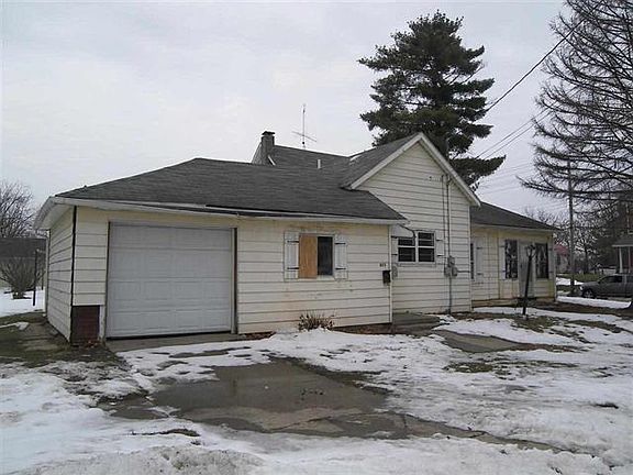Affordable in-town one story with attached one car garage plus an unfinished partial basement (for mechanicals) in a great location near schools, grocery store, and downtown conveniences. Open living-family rooms, open dining room and kitchen, enclosed breezeway (side entry) with laundry room, front sunroom-porch could be 3rd bedroom, small rear patio, off-street parking, city water & sewer. Upgrades include: high efficiency GFA furnace, water heater, 100 amp breaker box. Needs some interior TLC. Value priced!