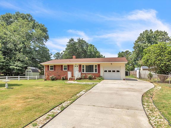 Welcome to this charming brick ranch home in Garner! This lovingly maintained 3 bedroom, 1 bathroom home features original hardwood floors, adding a touch of timeless elegance, complemented by new carpet in the bedrooms for cozy comfort. You'll love the sunroom, perfect for relaxing or entertaining guests. Practicality meets convenience with a one-car garage and an additional two-car carport, providing ample parking and storage. The expansive fenced backyard is perfect for outdoor activities, gardening, or simply enjoying the sunshine. Plus, the wired shed offers a great space for a workshop or extra storage. This conveniently located home seamlessly blends classic charm with modern conveniences. (Back screened porch is not included in the total square footage of the home)