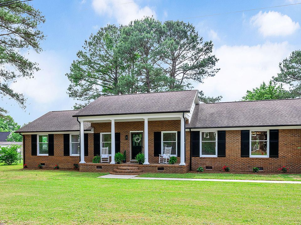 This AMAZING move-in ready, 2235 sq ft, all brick, custom built, ranch home has so much to offer, you must see it! 3 Bedrooms and 2 baths sits on .49 acre freshly landscaped. Peaceful, oversized rocking-chair front porch. Partially fenced back yard. A large separate dining room offers space for gatherings and everyday meals, while the eat-in kitchen provides a cozy, casual spot for morning coffee. Large formal living room and family room with custom built-in wood cabinets are perfect for entertaining. Sunroom is heated and cooled for year-round enjoyment. This home has lots of storage. Large 2 car garage with additional storage. Plus the carport has a attached storage room as well. New light fixtures, and mirrors. Freshly painted interior and exterior, & new luxury vinyl flooring throughout the home compliment the home's original character. This is a ''must see''!