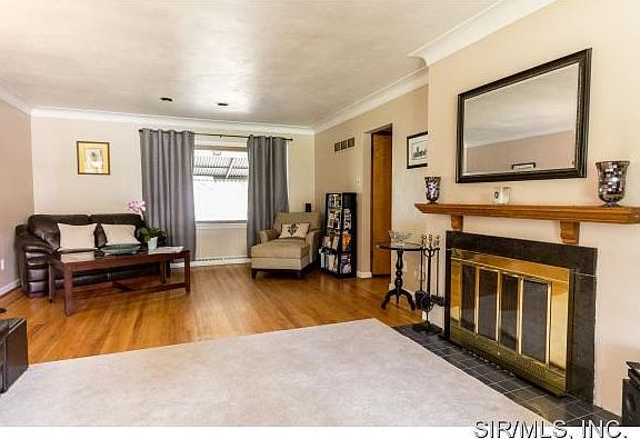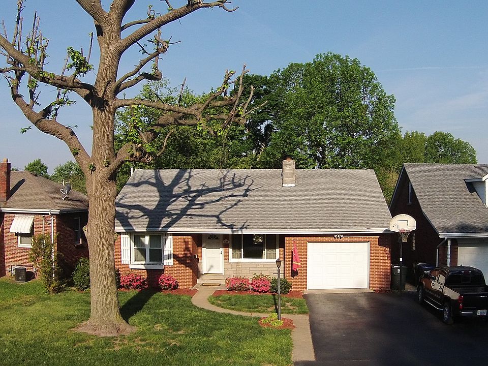 Absolutely charming 4 Bedroom, 2 Bath 1.5 story brick home on Waterloo Drive with mature trees. Spacious living room as you enter offers two large picture windows, hardwood floors, double cove ceiling & wood burning fireplace. The wood floors extend into the hallway to two of the bedrooms. Beautifully remodeled hall bath with custom tile work around tub & walls of tub as well as a beautiful granite top vanity. Kitchen remodeled in 2007 with tall maple cabinets with lots of storage space & crown molding. Appliances stay & microwave new in '14. Upstairs you will find a large family room with storage closets as well as 2 bedrooms. Basement is partially finished with a 3/4 bath, walls & floors, but no ceiling. Large family room type area in the basement. Updates: Roof, zoned HVAC units(a/c & furnace - 2 units each) & kitchen in 2007. Water heater about 3 years old. Garage door & opener 2014. Maintenance free deck, tree house, whirlpool tub, 200 amp circuit breakers.