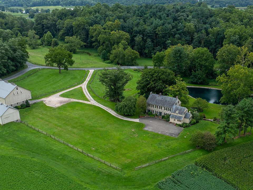 Welcome to Beaver Run Farm, a stunning 57.3+/- acre estate nestled in the scenic countryside of Strasburg, the heart of Lancaster County, PA. This exceptional property offers a blend of tillable fields, wooded areas, fenced meadow / pasture, a meandering creek, pond and peaceful setting all surrounding a very special 2 ½ story stone home built in 1814, 51x76 Bank Barn and 30x36 Tobacco Barn. The impressive 5,660+/- sq. ft. home features 7 Bedrooms, 4.5 Baths, 3 staircases, 4 fireplaces (non-working), deep windowsills, and historic charm and character that words simply cannot describe. Extensive millwork & wood moldings, built-in’s, wide plank wood floors, and 9’6”+ ceilings are in many rooms throughout. The home overlooks a picturesque pond, with multiple outdoor living spaces that are perfect for entertaining, including a covered porch, screened in porch, and patio, all with stone floors. The long driveway gently curves offering a tranquil approach to the private setting of the home. At the front door you will be gracefully welcomed by a semi-circle stone step flanked by large classic lantern style lamppost lights adding to the historic character of the home. Upon stepping in you will feel right at home with the warm glow of the wide plank wood floors in the centrally located grand foyer with curved staircase. The Living Room boasts incredible millwork including sections of raised panel wood walls, heavy crown molding, chair rail, corner cupboard, fireplace with mantel, staircase to the 2nd and 3rd floors, and a hidden entry in the wall that can be opened to the Family Rm that creates a memorable space for entertaining. The Family Room is highlighted by beautiful trim work, crown molding, built-in bookshelves, and fireplace with mantel. The 21x15 Dining Room is truly unforgettable, with a LARGE fireplace, stone floor, raised panel wood wall, arched doorways, built-ins for dinnerware storage, and doorways leading to the screened in porch. The expansive Kitchen with triple windows at the sink overlooking the pond and landscaped grounds, additional prep area with sink, plentiful cabinetry and storage space, breakfast nook with farmland views, large laundry area with cabinetry and sink, staircase to Primary Bedroom Suite area and bedroom that could be an ideal office. The enclosed Porch/Mudroom is just off the kitchen with outside entrance for “everyday” use to driveway. The Primary Bedroom Suite features a fireplace, crown molding and chair rail, closet area, primary bath with tile floor, water closet, two sinks and a walk in tile shower. The additional four bedrooms and two full baths on 2nd floor each have their own charm and character. Two more bedrooms and full bath on the third floor each with cathedral ceilings and exposed wood beams, and one of the bedrooms having a built in desk, shelves, drawers, and storage space. The lower level of bank barn contains the garage that is deep enough for two cars. The First Floor of the home has Central Air Conditioning. The Property is enrolled in Act 319 (Clean & Green) and is Zoned Agricultural. The Property is located on both sides of the road – see GIS view of parcel. Location offers a rural country setting while being closed to major cities and airports. It’s approximately 1.5 hours from Philadelphia and Baltimore, 2.5 hours to Washington, DC, and roughly a 2 ¾ to 3 hour drive to New York City. This may be a once in a lifetime opportunity to acquire this rare property!