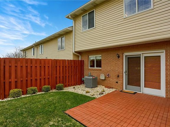 Open and Spacious Townhome conveniently located close to Route 79, 279, 376, shopping and more! Oversized living room with fireplace, fully equipped kitchen with pantry, dining room with slider to patio, two oversized bedrooms with full baths! Great closet space. Garage is also oversized to accommodate lots of storage! New carpeting throughout! Updated HVAC. Lawn care, snow removal on roads, trash included in monthly HOA fee.