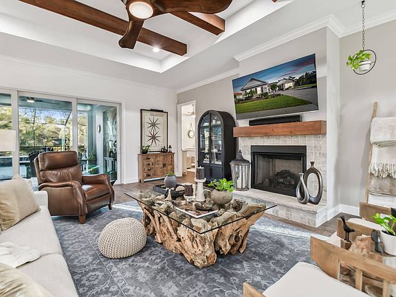 NEW PRICE! Experience Luxury Living with Timeless Craftsmanship in Abbey Oaks Step into this upgraded Craftsman-style home that perfectly blends rustic charm with modern elegance. With its warm Pottery Barn aesthetic and thoughtful upgrades throughout, this 4-bedroom, 3-bath custom residence invites you to live, relax, and entertain in style. The welcoming paver driveway and accent lighting set the tone for what's inside-an open-concept floor plan designed for connection and comfort. The spacious great room flows seamlessly into the kitchen and dining areas, highlighted by a stunning gas fireplace and a custom steel-and-copper range hood. Wood beam ceilings, porcelain tile floors, and designer finishes elevate every space. Open the sliding doors to your private Florida retreat: a screened lanai overlooking a resort-worthy pool and spa with multilabel waterfalls and pond views. The outdoor living area expands your entertaining space and showcases the best of Florida living. The gourmet kitchen is a dream for any home chef, featuring maple-glazed cabinetry, granite countertops, stainless-steel appliances, a wine cooler, and an oversized pantry with custom shelving. The luxurious primary suite offers a serene escape with a tray ceiling, spa-inspired bath, freestanding tub, walk-in shower, dual vanities, and custom walk-in closets. Three additional bedrooms-one with a private ensuite that doubles as a pool bath-provide flexibility for family, guests, or a home office. Upgrades include a full-house backup generator, surround sound with dual zones, a screened pool addition, and extensive custom wood shelving. Located in the gated community of Abbey Oaks, this home combines privacy and convenience-just minutes to Lakeland, Plant City, and I-4 access, yet surrounded by the peaceful charm of a rural setting.