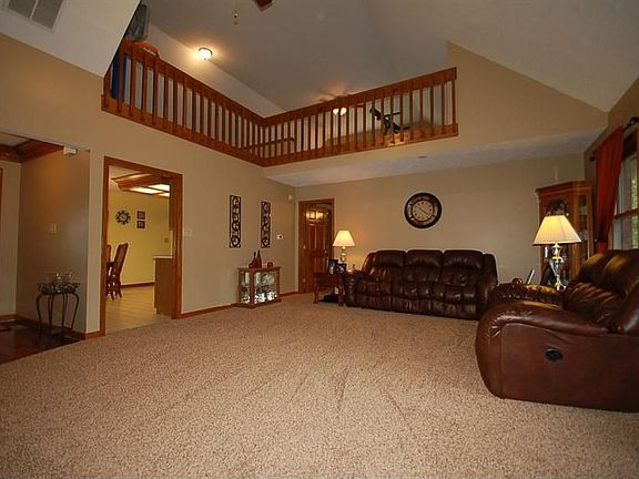 Custom-built, all brick ranch home in Franklin Twp offers countless amenities! Great room boasts brick wood-burning fireplace & soaring cathedral ceiling. Master suite features crown moulding & private bath w/double sink vanity. All 3 bedrooms have large walk-in closets. Upper level loft provides additional gathering space. Covered deck perfect for get-togethers overlooks the spacious fenced-in backyard w/beautiful landscaping. New A/C 2012; water heater 2011; furnace 2008; roof & gutters 2007.