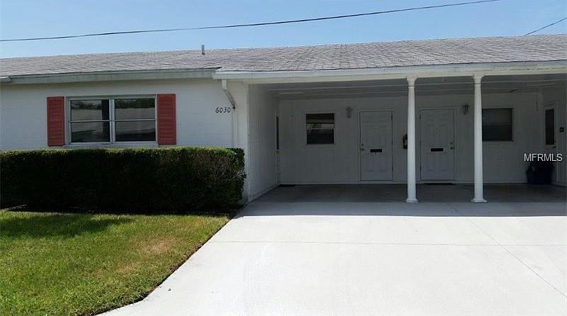 New counter top in kitchen. A true 2 bed room villa, has carpet and Plantation Blinds in both bedrooms, dining room and living room. Ceramic tile in dining room, living room, and kitchen. Furnished villa with 55 community, large heated community pool, and large clubhouse for activities. Low maintenance fee $212.00. Close to all types of shopping. Being sold as-is. Need to use as-is contract. There is room in either walk-in closets for a washer/dryer connection. There is also washers/dryers in the Clubhouse.