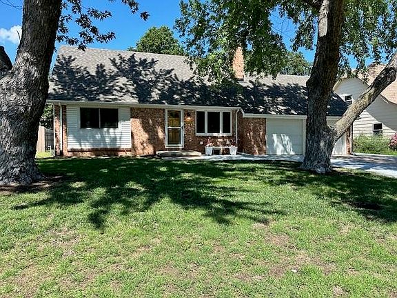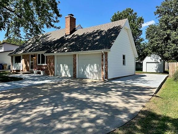 4 bedroom 2 bathroom home in Bel Aire. Beautiful oak woodwork and cabinetry. Freshly painted interior and complete new carpet and floor covering. New back covered patio and new side driveway perfect for extra parking or RV parking. The backyard has an extra 1-car garage. Plenty of storage in the main garage and a sprinkler system for the yard. Very clean and move-in ready.