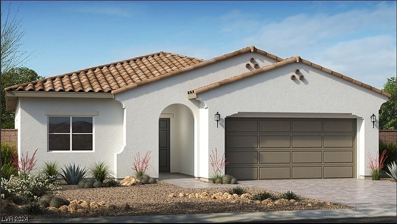 REPRESENTATIVE PHOTOS ADDED! July Completion - Explore the charm of Plan 1 at Valencia in Mountain Falls! This single-story retreat spans 1,513 sq. ft., comprising 2 bedrooms, 2 baths, a flex room and a 2-car garage. The private backyard beckons with space for a potential pool and panoramic views of Mount Charleston. Enter through the foyer into a seamlessly crafted open-concept kitchen and gathering room, an ideal backdrop for entertaining. The outdoor living space elevates the experience, providing a sun-soaked retreat year-round. Luxuriate in upgraded cabinets, countertops, and flooring – a testament to the meticulous details defining this home. Welcome to a residence where thoughtful design and scenic vistas converge at Valencia in Mountain Falls. Structural options include: study in lieu of bedroom 2 , and 50AMP Dedicated 220V in garage.