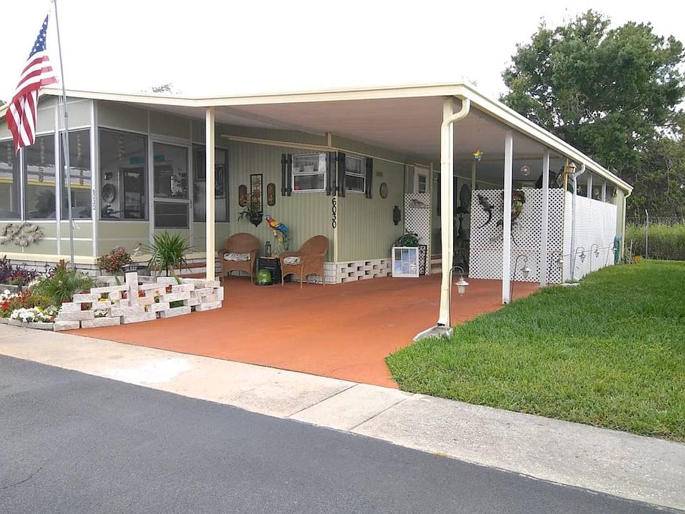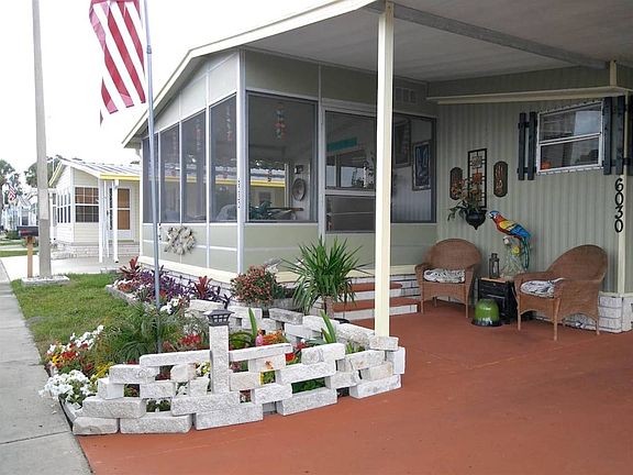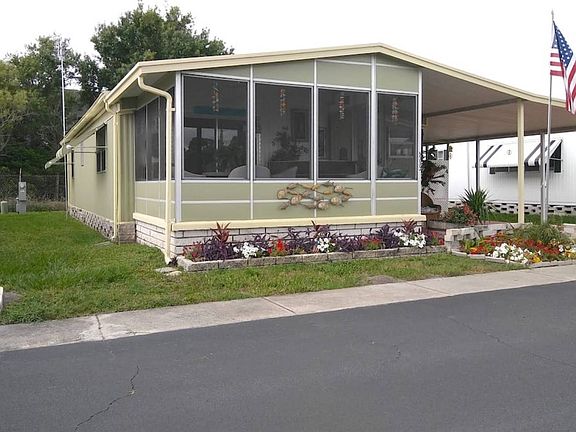 This 2 Bedroom, 2 Bath Partially Furnished Home is in SUNCOAST GATEWAY MOBILE HOME PARK, a well-maintained park in PORT RICHEY. The Home is Nicely Landscaped. There is Central Air and Heat that is only 3 years old with New Duct Work. The Roof is a Sealed Roof-Over. The Kitchen is Remodeled with New Counter Tops, Tons of Cabinet Space, Built-in Microwave, Dishwasher, and like new appliances, and a pass-through Counter Bar to the Dining and Living Areas. Flooring is Tile in the Living Room and Wood Laminate in the rest of the home. There are High Cathedral Ceilings throughout the Home. There is a large Master Bedroom. The Master Bath has a large tub plus a Walk-in Closet and Linen Closet. The Guest Bath has shower tub combo. Outside in the Covered Patio is storage Shed/ Workshop with washer and dryer. There is a Screened-in Porch in the front of the home and Covered Patio. Suncoast Gateway is a 55-Plus Community in Port, Richey FL and is close to the mall, many restaurants and walking distance to a state park. The Park has a Heated Pool, Fitness Center, Shuffleboard and Clubhouse with lots of activities. Lot Rent is $571 a month and includes water, sewer, trash, lawn and all the Park Amenities. Pet Friendly - 1 pet any size, just no aggressive breeds. THIS HOME IS PRICED TO SELL!! A LOT OF HOME FOR THE MONEY AND SOME OF THE FURNITURE STAYS! DO NOT LET THIS ONE SLIP BY! ------------------- Cash Only ----------------------