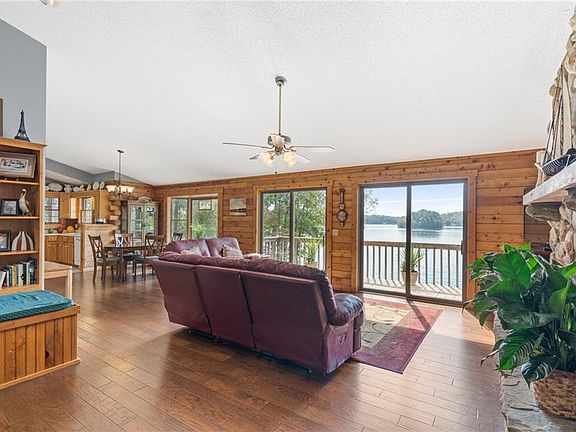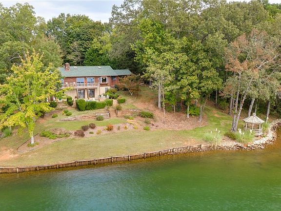 Remarkable point lot home with 295 feet of frontage along Lake Keowee, featuring sweeping views, full sized boat dock, and no HOA. A gentle concrete driveway welcomes you to your home on Lake Keowee, constructed in 1990 and located on a prime point lot, convenient to Seneca, but still offering privacy. Enter through the front entrance and into the great room, boasting vaulted ceilings, rock fireplace, and views out across the main body of the Lake from a wall of sliding glass doors. The floor plan is open with the great room flowing seamlessly into the dining area, featuring a bay window. The kitchen is open as well, with a center island and tons of cabinets for storage. The master suite is located on the main level, with a rock fireplace and a fantastic view of the water. Master bath features his and her sinks, and a spacious walk in closet. The main level also contains an additional bedroom, full bath and dedicated office, perfect for working from home, or homeschooling. There is deck around the main level of the home as well, offering sweeping views. The lower level contains a kitchenette, and its own great room, perfect for entertaining, a mother in law suite or as an air bnb. There are two lower level bedrooms, and its own full bath. Further on the lower level, you'll find a laundry area, and storage. The deck is oversized on the lower level, with a place for a hot tub and tons of room for any outdoor activity. The walk down to the water is gentle, without steep slopes. Along the close to 300 feet of waterfront you'll find a gazebo and full sized boat dock. Privacy, convenience and one of the best lots on Lake Keowee, this property is priced to sell and is being sold as is, light restrictions and no HOA, make this ideal for investment property, forever home, or potential flip. This is truly a must see.