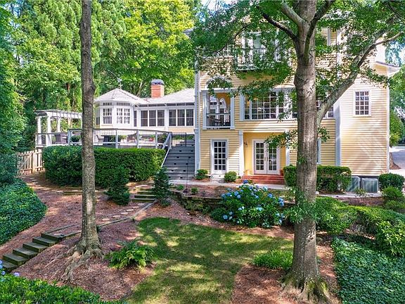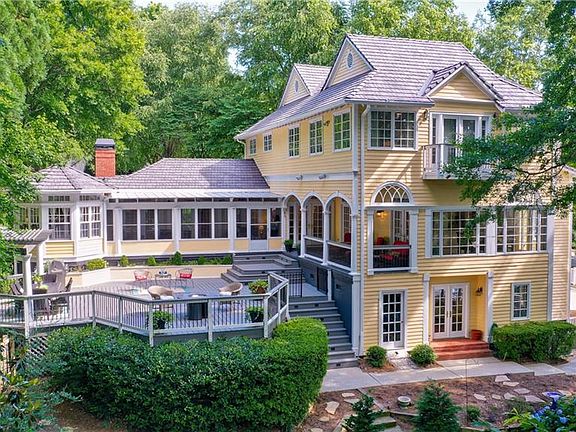 Extraordinary! The curb appeal alone on this special home overlooking the Chattahoochee River is so enchanting it is affectionately called "The Yellow House". The distinctive DaVinci tile roof offers maintenance free character to this Connecticut inspired jewel box. As you enter, your eye is immediately drawn to a magnificent year-round view of the river. And then you pause to take in the charm and craftsmanship of each space. Barrel ceiling with inlaid beadboard frame the foyer, vaulted ceiling with exposed beams in the expansive family room, a delightful 3 season porch overlooks a resort scale deck for outdoor entertaining. A light-filled kitchen with sunroom and casual dining are surrounded by French doors and gorgeous windows. Descriptions of bedrooms and baths with secret hideaways, star filled ceilings, and private balconies fall far short of the experience viewing this home.Situated on the premier cul de sac in Inverness, the gateway swim/tennis neighborhood to Roswell Riverwalk. Award winning schools, fantastic location, incredible setting. The Yellow House is a truly a home full of whimsy and wonder that simply must be seen.