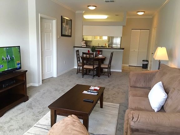 1 bedroom 1 bath apartment located on the 2nd floor. King bed, flatscreen tv's located in living room and master bedroom. Washer and dryer located in the unit. Fully equipped for cooking and eating in! Fully furnished short-term vacation rental available for daily weekly and monthly rent. NIGHTLY RENT $92/night