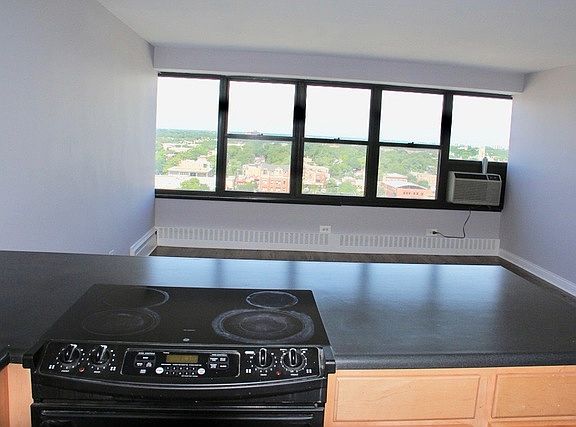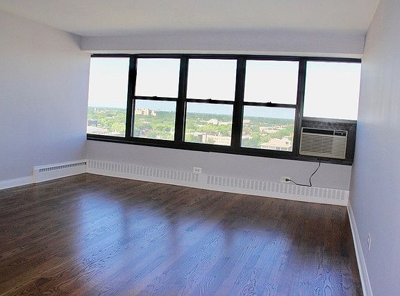 1 bed/ 1 bath available now! Sweeping West views of the city and sunset! Up to date palette with gray paint and oak hardwood floors in a walnut finish. Sleek, open kitchen with maple cabinets, breakfast bar, DW & microwave. Laundry on 2nd floor. Ample closet space. Rent includes heat, doorman. Building has small gym, bike room, guest & leased parking available. Steps to lake, redline and express buses.