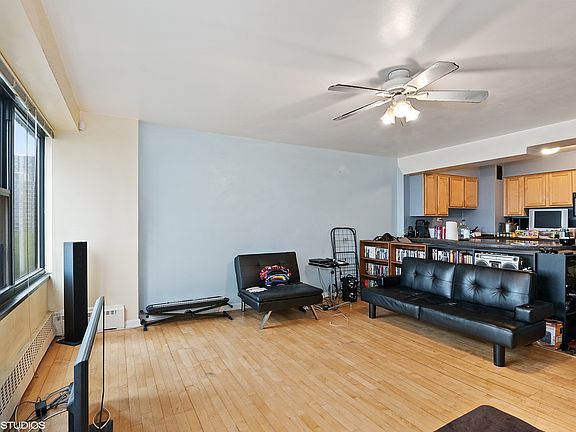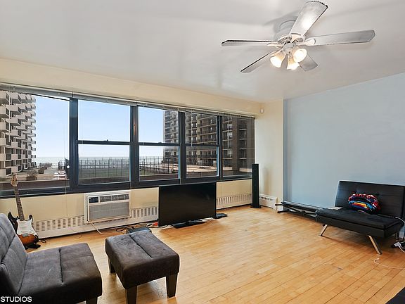 Bright and Spacious East Facing Studio with Lake Views! Watch the Sunrise! Convenient City Living with Open Floor Plan. Over-Sized Kitchen with Tons of Cabinetry, Large Island and Stainless Steel Appliances: Refrigerator, Range, Microwave, Dishwasher. Solid, Well Cared for Building! Features New Exercise Room, Bike Room, Garage Parking for Rent, 24 Hr Door Staff, 24 Hr Maintenance, In-Building Management and More! Minutes to Downtown, Walking Distance to Red Line Train, Minutes to Metropolis Coffee, Lakefront Beaches and Bike Paths, Restaurants, Pubs, Whole Foods and Everything that Chicago Offers! Low Assessments include Heat! Low Taxes!