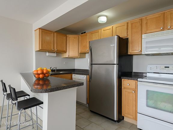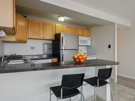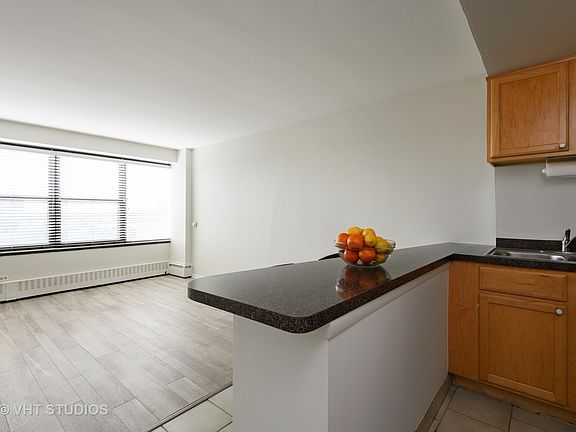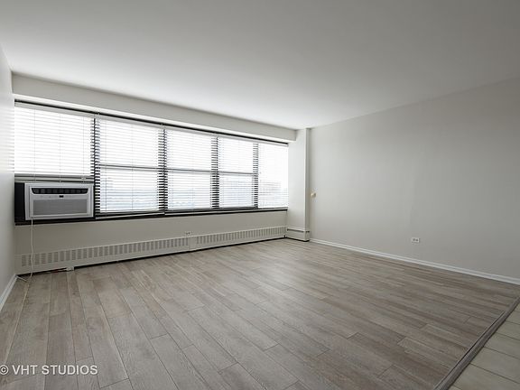One bedroom unit with a bright, unobstructed western exposure! This unit is in move-in condition! All walls, ceilings, doors and molding are freshly painted and the tub has been reglazed. The air condition units are two years old as is the stainless refrigerator. The spacious bedroom is large enough for a king sized bed, night stands, seating and a chest of drawers. All windows have 2'' white blinds and the flooring is an updated neutral gray tone. There is a large coat closet in the front hallway, a wardrobe closet in the bedroom and two linen closets. Building amenities include: door person, fitness room, bike room and storage. Close to everything: the lake, CTA 136 and 147 express bus and train stops, shopping, dining and Loyola. Rental parking is available at $213/month for a single spot or $166/month for a tandem shared parking space. Pet friendly. Investors are welcome!