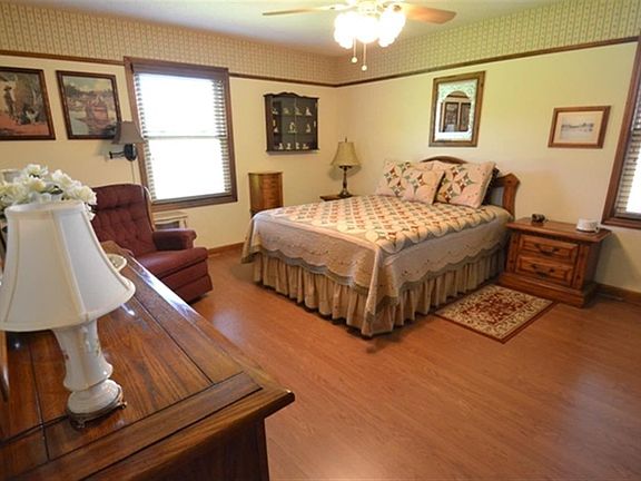 Beautiful Farm! 25 acres with approximately 15 acres of fenced level land with a 3 acre pond, 35 x 48 Oak Barn with 7 stalls, electric and water, tack room and a full loft. Five bay 20 x 60 tractor shed, 20 x 40 metal shop with 110 & 220 electric, chain hoist, wired for welding, and RV storage with electric. Peaceful tranquil setting at the rear of the property with a covered picnic building w/water and a half bath overlooking the pond. In the pasture area there is a covered shed to protect livestock. Well maintained three bedroom, two bath home with meticulous landscaping. Kitchen has tile floors, black appliances, pantry, and a breakfast area with a bay window overlooking the pasture and barn. Huge walk in laundry room with shelving and tile floor. Great room has a brick fireplace w/gas logs and French doors opening to a concrete patio area. Large master bedroom with two closets and master bath has separate sink areas. Two other bedrooms, 6 x 9 office, linen closet, and a bookcase with storage in the hallway. Over sized garage with a storage area, garage door opener was replaced in 2013. Double hung windows replaced 6 years ago, HVAC replaced in 2000, 30 year architectural roof replaced in 2008 on both the house and barn. A must see! Appraisal was completed before home was put on the market.