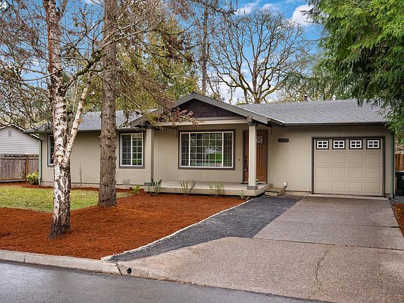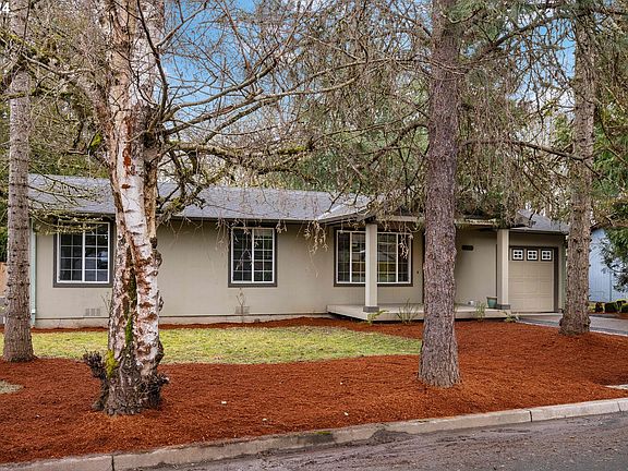 Private oasis tucked behind mature trees on a private lot in Beaverton. The cozy and inviting home offers a spacious living room complete with large picture window. The sweet kitchen has everything needed for daily meal prep and entertaining alike. Wash dishes with a view thanks to the generous window over the sink. Dining room opens to the huge backyard that borders a walking path to Hazeldale Park & Dog Park. Three bedrooms conveniently located all on the same floor. Fresh interior paint, carpets, and efficient double-paned windows throughout. Impressive landscaping features blueberry bushes, raised beds with vegetables, and fruits, PLUS apple, pear, and cherry trees! Animal lovers will appreciate the charming screened in catio that allows feline friends to enjoy the great outdoors safely any time of day. There's even a cute little house for raising suburban chickens! Attached single-car garage. Conveniently located near schools, multiple grocery stores, and more!