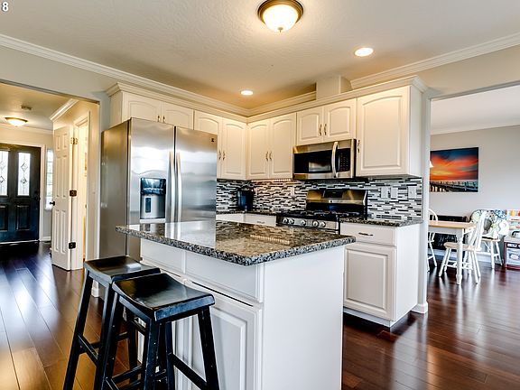 Beautifully remodeled home. Covered porch. Kitchen features granite counters, wood floors, island, SS appliances. Dining room open to living area w/slider to back. Living room w/cozy gas fireplace & wood floors. Vaulted master suite w/private bath w/dual sink vanity. Bonus room w/sky lights can be 4th bedroom. Fully fenced yard w/covered patio & tool shed.