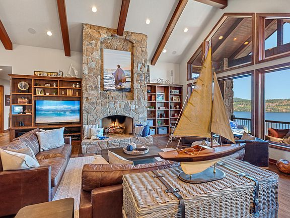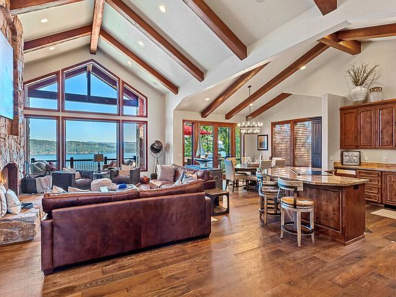NORTH IDAHO DREAM! VIEWS THAT WILL TAKE YOUR BREATH AWAY LOCATED AT PRESTIGIOUS BLACK ROCK. This newly remodeled craftsman style home features new hardwood floors, a new state-of-the-art theater room, and luxury finishes throughout the entire floor plan. The open concept floor plan features vaulted ceilings w/gorgeous beam accents, stacked stone fireplaces, and picture windows that capture unobstructed views of the famous Lake Coeur d'Alene. The spacious master suite, 2nd bedroom, and office on the main floor. The lower level features two additional bedrooms with one being a second ensuite, family/game room, kitchenette, and theater room - perfect for extended stay guests. Incredible outdoor living spaces with an expansive covered deck, hot tub, and fire pit that captures the beautiful...