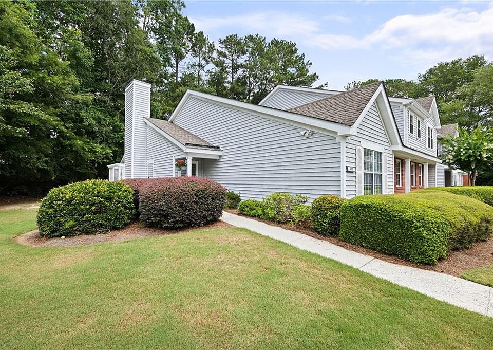 Fantastic move-in ready condo that is just minutes from downtown Alpharetta and Avalon! A stand out among the rest, this unit has no stairs and an abundance of sunlight that streams from the finished sunroom just off the main living room. Upgrades include new HVAC, LVP flooring, carpet, paint, marble bath vanity, light fixtures and a finished sunroom. The white kitchen has granite countertops, white subway tile and stainless steel gas cooktop and dishwasher. The kitchen has a serving passthrough to the quaint dining room. Down the hall, the primary bedroom is spacious with plenty of closet space and an en-suite white bathroom with custom cabinetry. The secondary bedroom is very spacious that can double as an office. What about the backyard? Yes indeed, the sunroom has sliding doors that open up to the back patio that is completely private overlooking woods. Hurry, this one won't last long! i