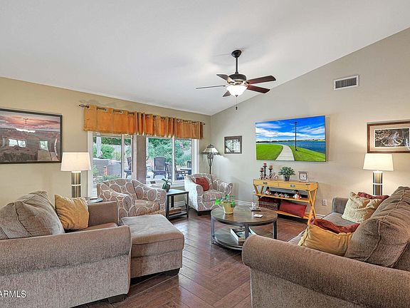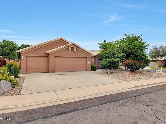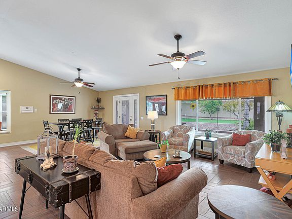 Don't miss this immaculate, light & bright single-story home in the highly desirable Ridgeview Community! This gorgeous, open floor plan shines with pride of ownership and upgrades in all the right places. Neutral colors, designer chevron pattern tile flooring, and direct views through large windows will invite you toward the picturesque backyard. The kitchen is stylish with white cabinets, stainless appliances, black granite counters, a glass pantry accent door & cozy bay window seat! Extremely versatile use of space as you can use the eat-in table or entertain in the adjacent formal dining area. The master bedroom is spacious and quiet with a beautiful double sink bathroom suite, walk-in closet, and direct access to the backyard. Nestled in a peaceful, charming neighborhood (with no HOA Fees!) close to freeway access, convenience to restaurants and shopping, and just minutes from unlimited miles of trails and outdoor adventure at Usery Mt. National Park! Large 3 car garage makes it easy to store all your toys. Resort-like backyard with extended patio, putting green, sparkling pebble tech pool, and hot tub for those cool Arizona nights. Sellers are willing to part with most furniture as a separate sale so this could work perfectly for a new family or someone looking to own a turn-key rental property! Endless possibilities for this rare gem of a home!