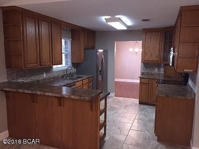Solid brick, 3 bedroom, 2 bath home in desirable neighborhood close to Tyndall AFB, shopping, and schools. Completely renovated and ready to move in. The kitchen overlooks the den with a beautiful brick wall and wood burning fireplace. There is also a sunken living room that is open to the dining room and foyer. Down the hall you have 3 very nice sized bedrooms. Master bedroom has two closets and an on suite bathroom. This house also features a huge screened in patio and large fenced in back yard perfect for your dog. A list of new items include NEW shingle roof, HVAC system, paint, carpet, tile, wood, backsplash, doors, baseboards, fans, vanities, toilets, tubs, bathroom hardware, faucets, light fixtures, kitchen sink, garbage disposal, refrigerator, range, microwave, dishwasher,