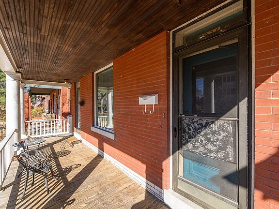 Garage parking in back in addition to the on-street parking, fenced-in backyard, too. Lovely large front porch to hang out on!