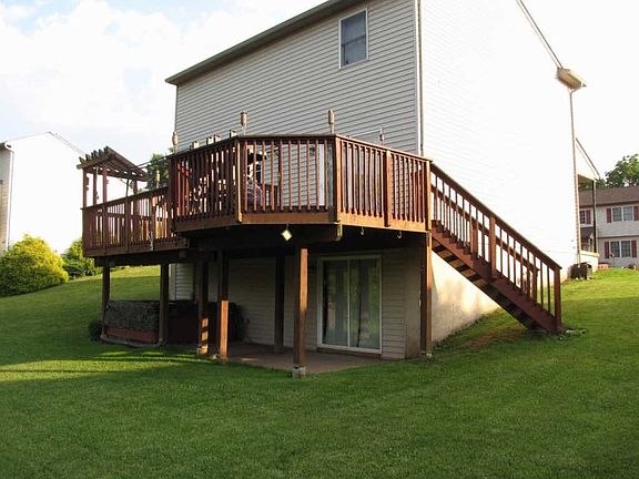 Relax on your raised deck overlooking Lond Pond ...This Exeter Township 3BR-2.5BA colonial home has a large eat-in kitchen and living room on the main level...Three generously sized bedrooms including a mater bedroom w/master bathroom and walk-in closet on the upper level...There is a large finished lower level family room with walk-out slider to the back yard...Efficient gas heat,central a/c and two car garage...Close to Route 422 for commuting and shopping...Schedule your showing today !