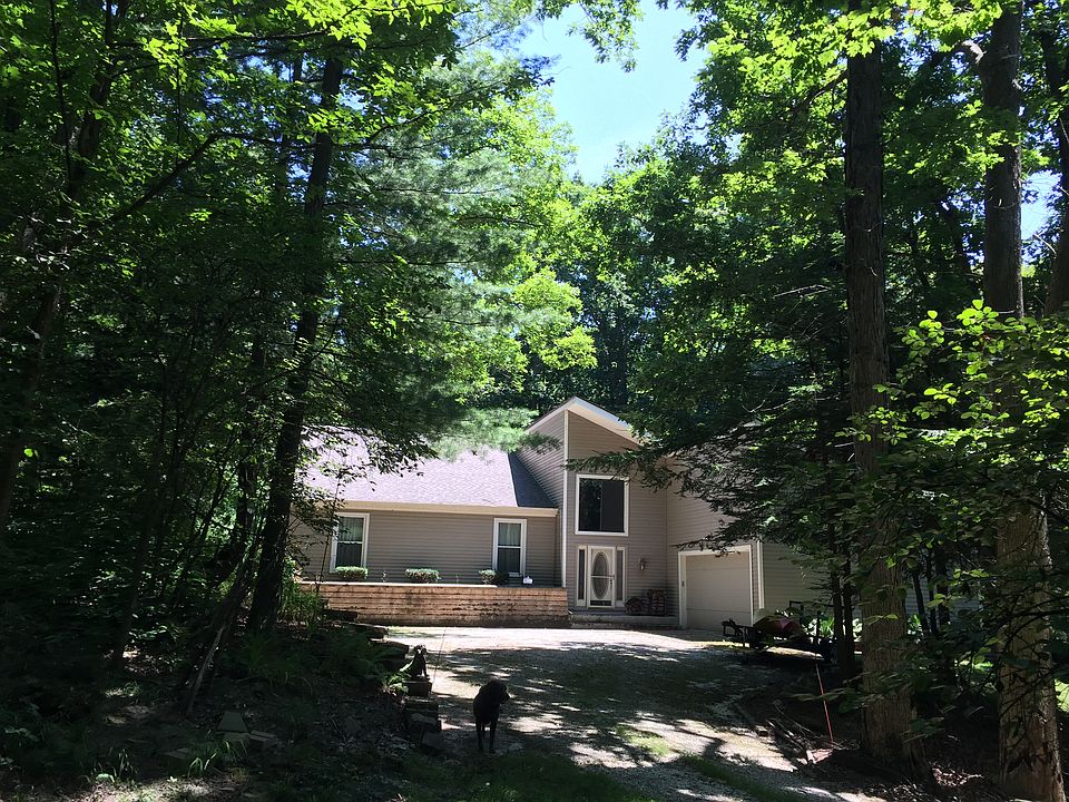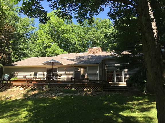 This inviting Contemporary home is tucked away on a private wooded 3.73 acre lot that is adjoining to the expansive 232 acre Blue heron Montville land conservancy. Vaulted ceilings and skylights compliment the open floor plan. The open concept Kitchen offers tile floors and an island, patio doors lead out to a large deck overlooking the park like setting. The vaulted Great Room is accented with beautiful stone fireplaces. The deluxe owners Suite features its own fireplace and is complete with a jetted tub, separate shower and bay window. Large newer windows allow views to appreciate the wildlife.