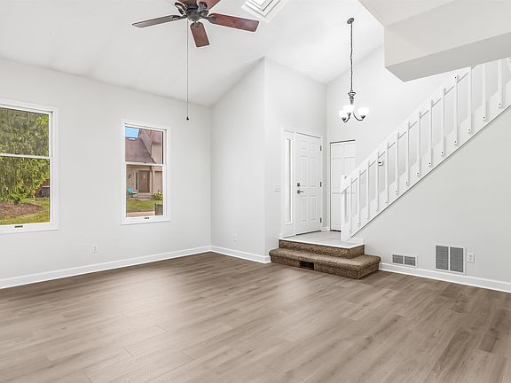This stunning remodeled end unit condo in Sawmill Woods is move-in ready and features several updates throughout. The property has a new roof (September 19th, 2024) The main floor offers new luxury vinyl plank flooring, fresh paint, new kitchen countertops and hardware, brand-new stainless steel appliances, new vanities, mirrors, and bathroom accessories, as well as professionally cleaned carpet. The open vaulted Great Room includes a stone-to-mantel gas fireplace and ceiling fan, with an updated kitchen that boasts a pass-through to the Great Room, tile flooring, and extends to the 1/2 bath and dining nook. Upstairs, the split bedroom floor plan provides a spacious Primary Bedroom with an oversized walk-in closet, pull-down attic access for extra storage, and a large primary bath with dual access. A private patio offers outdoor relaxation and grilling space. Community amenities include an association pool, tennis and basketball courts, playground, and clubhouse, with HOA benefits covering all exterior maintenance, including lawn care and snow removal. Additional features include a newer furnace and central air (2012). All appliances, including the washer and dryer, are included. This 2-bedroom, 1.5-bath condo also has a single-car attached garage. Don’t miss out on this well-maintained, recently remodeled home!