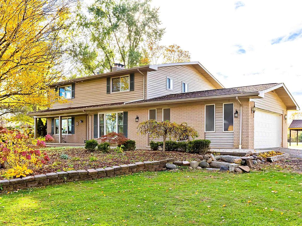 Enjoy the BEAUTY of country living close to all your shopping and dining needs. A winding drive through the treed front yard takes you to this well-kept Colonial with an expansive covered front porch. There is plenty of room to spread out on the main floor with a huge Kitchen and massive Family Room. Enough cabinets in this kitchen to house all of your cooking items and plenty of counter space. Blt-in double oven makes cooking a breeze. The view of nature through your door wall is yours to enjoy while you eat. Then relax in front of a roaring fire from the wood burning fireplace in the Family Room. Enjoy looking out the large window that frames the treed front yard. Upstrs bedrooms have new carpet and are freshly painted and share a full bathroom with tub shower. Have you been looking for a dream Master Bedroom? This one offers a 2-person jetted tub, tiled shower, additional tub shower, 3 closets including a WIC - enough space to enlarge or add whatever you want. Basement is partially finished and includes a second wood burning fireplace. Outdoor storage will not be an issue with an extra detached 2-car workshop garage, a big shed and a barn. Full house Generator included. Home Warranty. Furnace - 6 yrs, A/C - 4 yrs, Roof - 2022 complete tear off with all new attic insulation. Great Home!