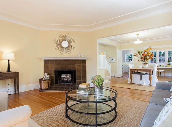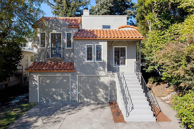 Special Mediterranean home in central Rockridge location on quiet tree lined street. Light filled rooms, verdant outlooks, charming balcony, fireplace, wood floors, generous outdoor spaces & established lawn. Plus laundry rm, 2 car garage & ample storage. Near BART, College Ave & Chabot Elementary.
