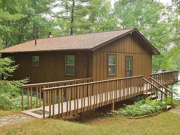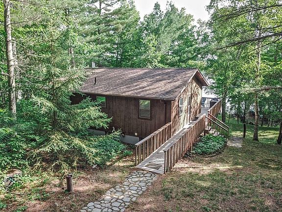 Tired of seeing cabins that need all sorts of work or cleaning? Come visit this charming neat & clean year 'round cabin situated on the shores of a TRUE hidden gem, Bass Lake! Move In Ready! Cabin feel with knotty pine ceilings & some walls! Bass Lake offers deep gin colored waters & great fishing! Plus the Bass Lake community is tight knit and social! The lot is just over an acre. The cabin is set far off the road at the end of a long driveway! (Privacy). Plus a feeling of elbow room to both sides! Large fire pit area at the lakefront overlooks the hard bottomed lake bottom that drops quickly beyond the dock. Inside features an open easy-living kitchen/dining/living area! Patio door opens onto large comfortable 3 season porch! Walkout lower level features a family room with plenty of finished area for a 3rd br, (see photos). The lot features a number of LARGE mature pines! Oversized garage + shed. Across road trail leads to ATV and snowmobile trails!